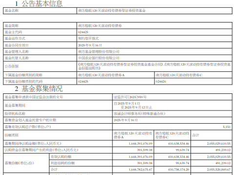 中国经济网络北京,9月17日。今天,南方基金宣布了有关有效执行南部稳定航空公司120天的滚动债券持有债券投资协议的广告。融资期间的净订购金额为RMB2,055,029,610.55,融资期间订购基金产生的利息为RMB491,239.12,总股票总数为2,055,55220,849.67。基金经理Wang Jingming于2014年7月加入了南方基金,担任债券研究部的宏观和信用研究员。从2018年5月17日到2021年8月27日,他担任Nanfang Runyuan的助理基金管理员,从2021年8月27日,他为Como Como资金经理服务。