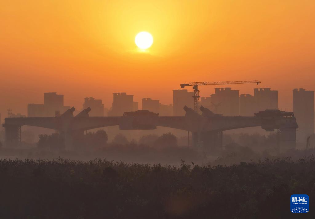 11 月 15 日拍摄的大桥(无人机照片)。 11月15日,由北京国家铁路局车站技术项目管理部管理、中铁十四局承建的雄新高铁跨越宝仓高速大桥的台伯河拱桥顺利合龙,标志着该工程建设取得重大进展,为后续架梁铺设工作奠定了坚实的基础。方式。可以看到雄新高铁从雄安站出发,到忻州西站结束。主线长度342公里。图片提供:新华社记者 邢光利