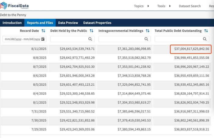 中国新闻服务,8月13日。美国财政部发布的最新数据表明,美国首次获得了总珍宝第一次超过370亿美元,达到了37004817625842美元。图片来源:美国官方网站的ScreenShots。 “时间泵”。一些经济学家说,如果他们超过要点,累积的质量债务将延迟经济增长。在这种情况下,投资者可以对美国调整其财务状况的能力失去信心,而不愿意为美国贷款提供资金而不会增加利率。